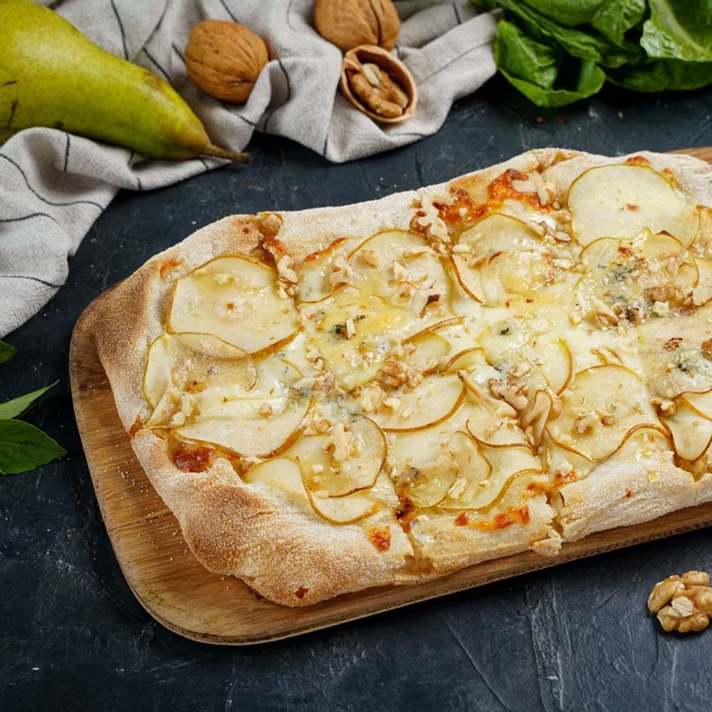 Нежность моцареллы, пикантность горгонзолы, сладость спелой груши, аромат меда и хруст грецкого ореха