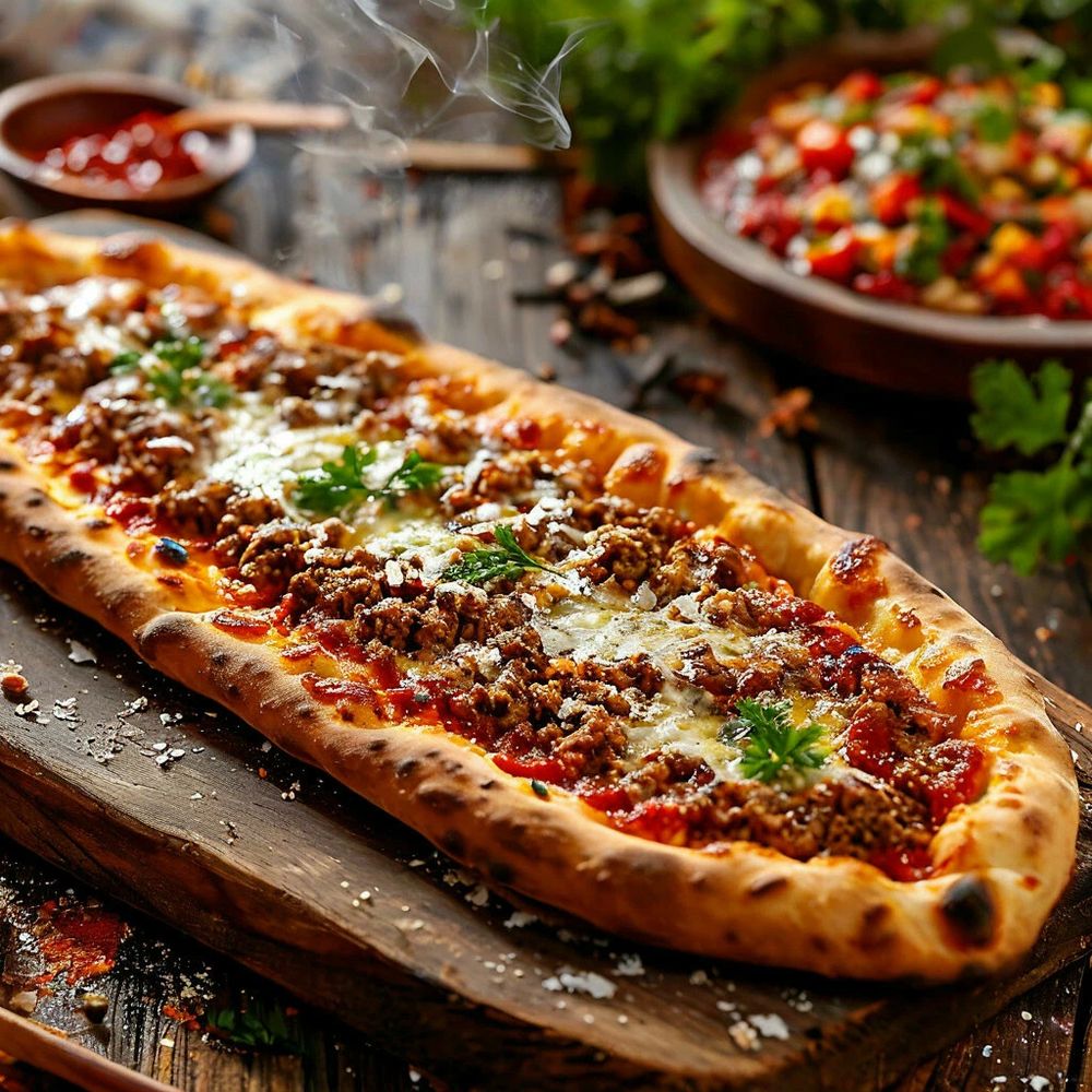 Сочное ассорти из свинины и говядины, свежие помидоры, насыщенный томатный соус и тягучий сыр