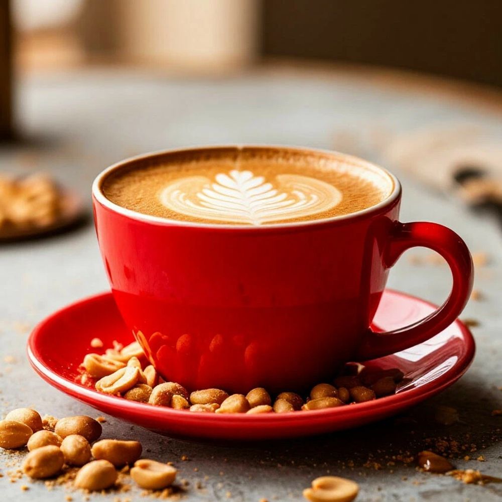 Эспрессо, молоко, арахисовая паста, карамель , арахисовые хлопья