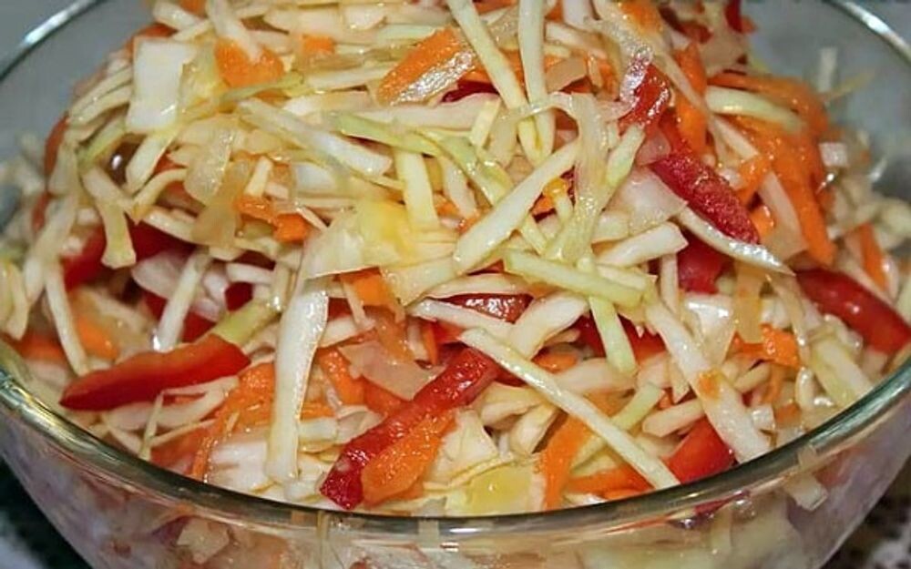 Вариант заготовки салата из белокочанной капусты со свежими помидорами и огурцами