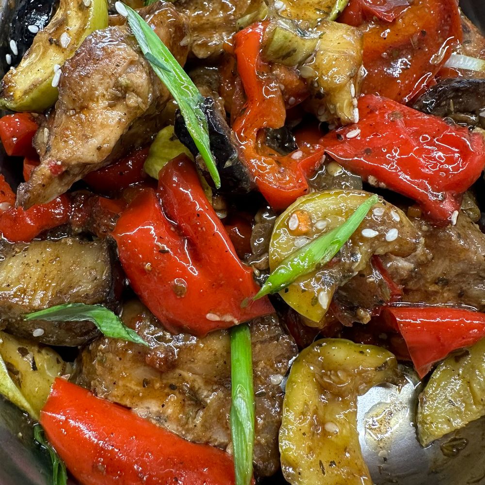 Куриное филе с кабачками и болгарским перцем (вес 150гр)