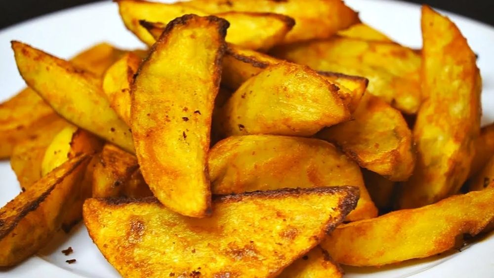 Порция картофеля, запеченного дольками в специях
